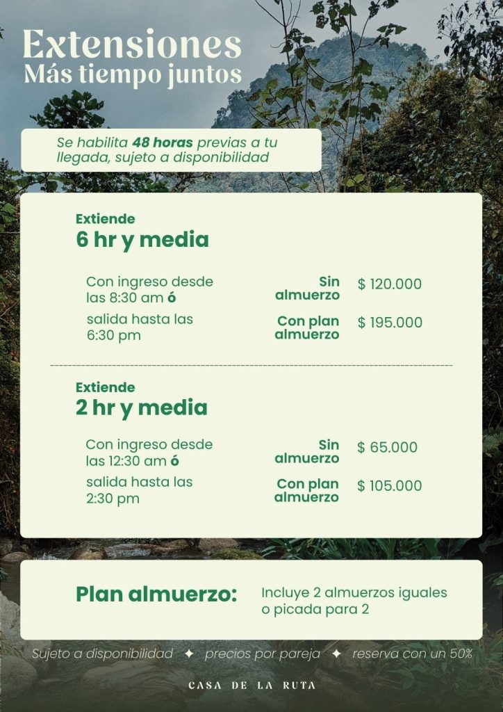 Para confirmar: abono del 50% del hospedaje y 100% de los planes complementarios.